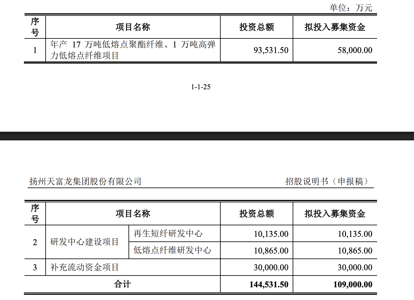 值得注意的是,2023年6月,天富龙提交的IPO申报稿获上交所受理,彼时,天富龙欲募资10.9亿元。2024年11月,天富龙更新招股说明书,公司拟募资7.9亿元,较原募资金额缩水约28%,具体为取消了3亿元的补充流动资金项目。