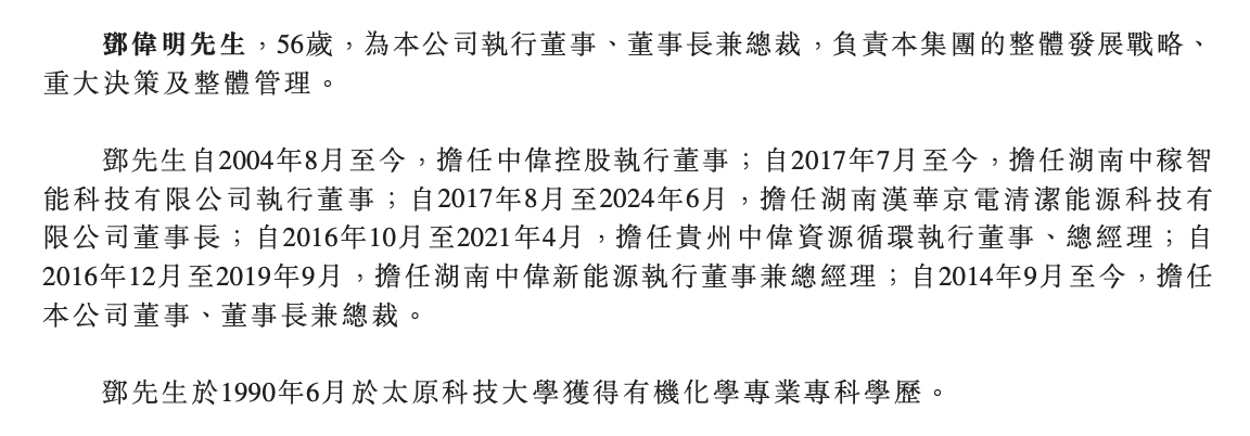 资料显示,邓伟明,现年56岁,为公司执行董事、董事长兼总裁,负责集团的整体发展战略、重大决策及整体管理。
