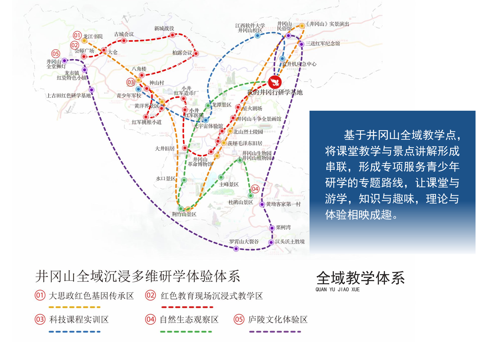 “我的井冈行”研学基地依托井冈山丰富的红色文化资源,以打造全国一流红色研学教育基地为目标,通过创新的教育模式、独创的思政课程,为广大中小学生、高校青年、社会团体提供丰富的研学教育体验。