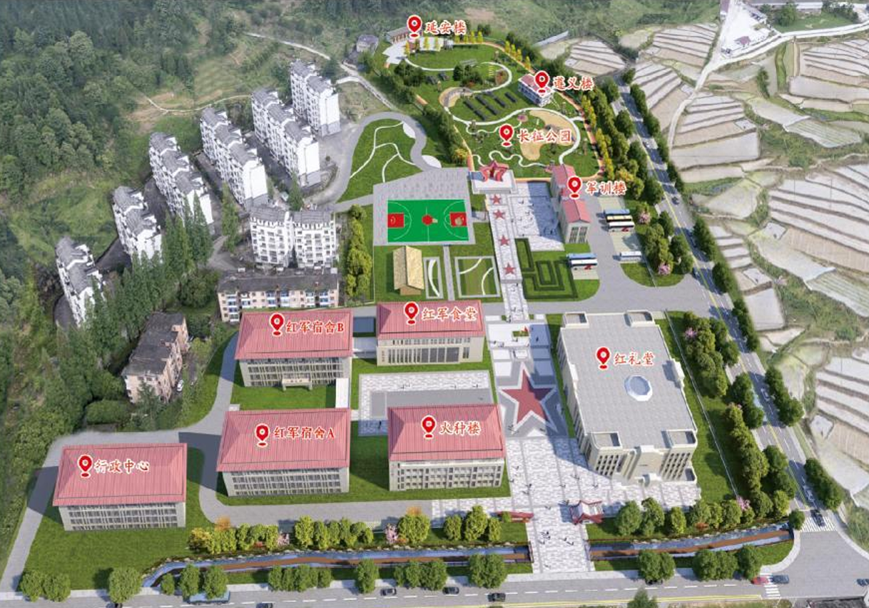 “我的井冈行”研学基地位于革命摇篮井冈山市,占地面积63亩,可同时接纳1000余人入住基地开展研学活动。基地以“星星之火,可以燎原”为主题,设置多个功能区域,包括红星广场、思政大礼堂、教学教室、宿舍楼、食堂、户外拓展训练区等,可以开展各类型红色文化教育与社会实践活动。