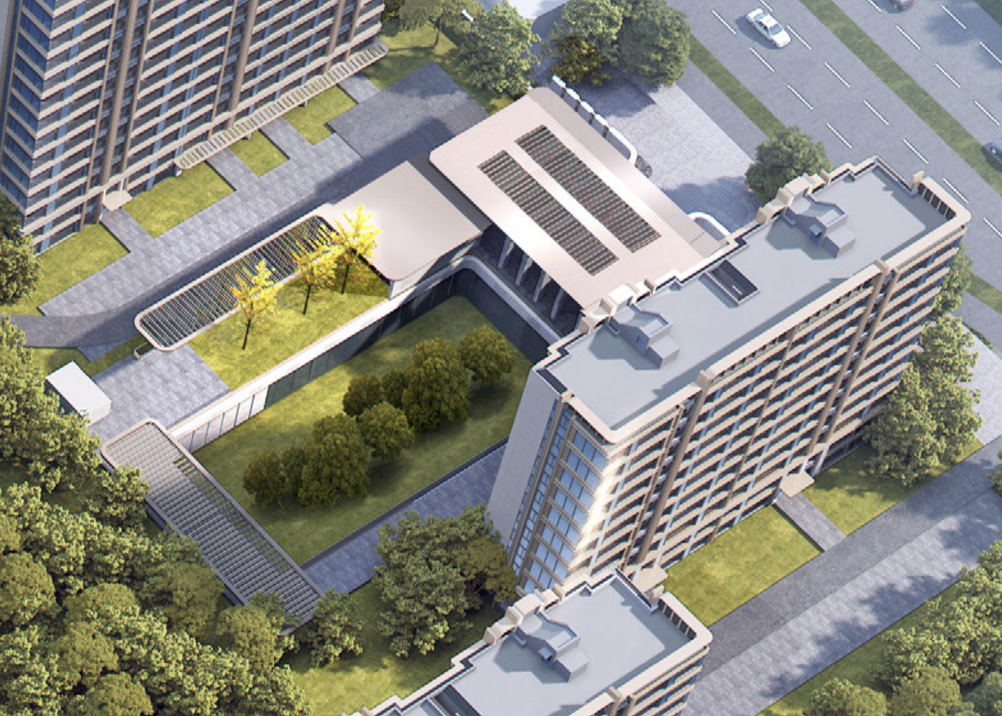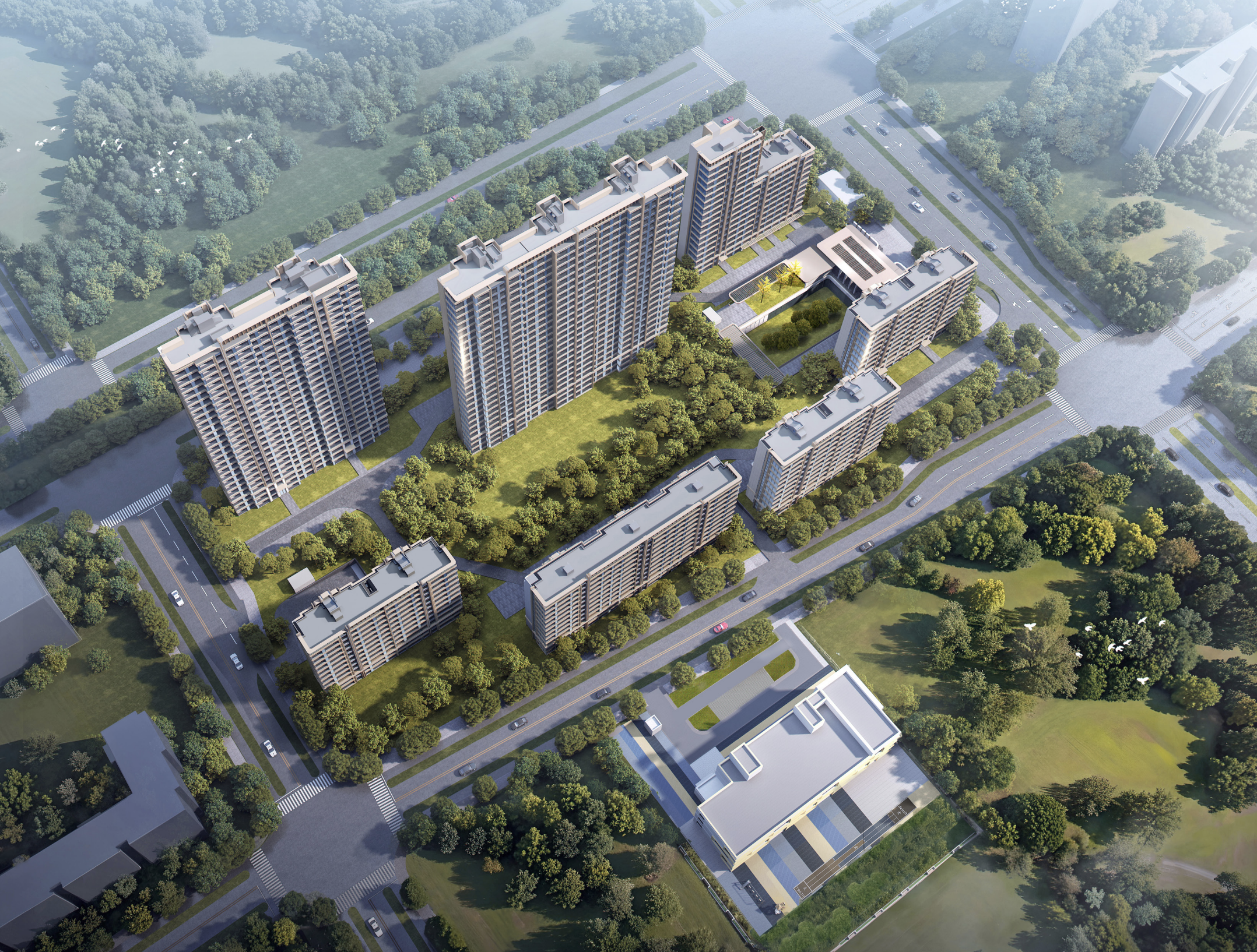 项目占地2.76公顷,总建面11.1万㎡,其中地上建面7.7万㎡,容积率2.8。