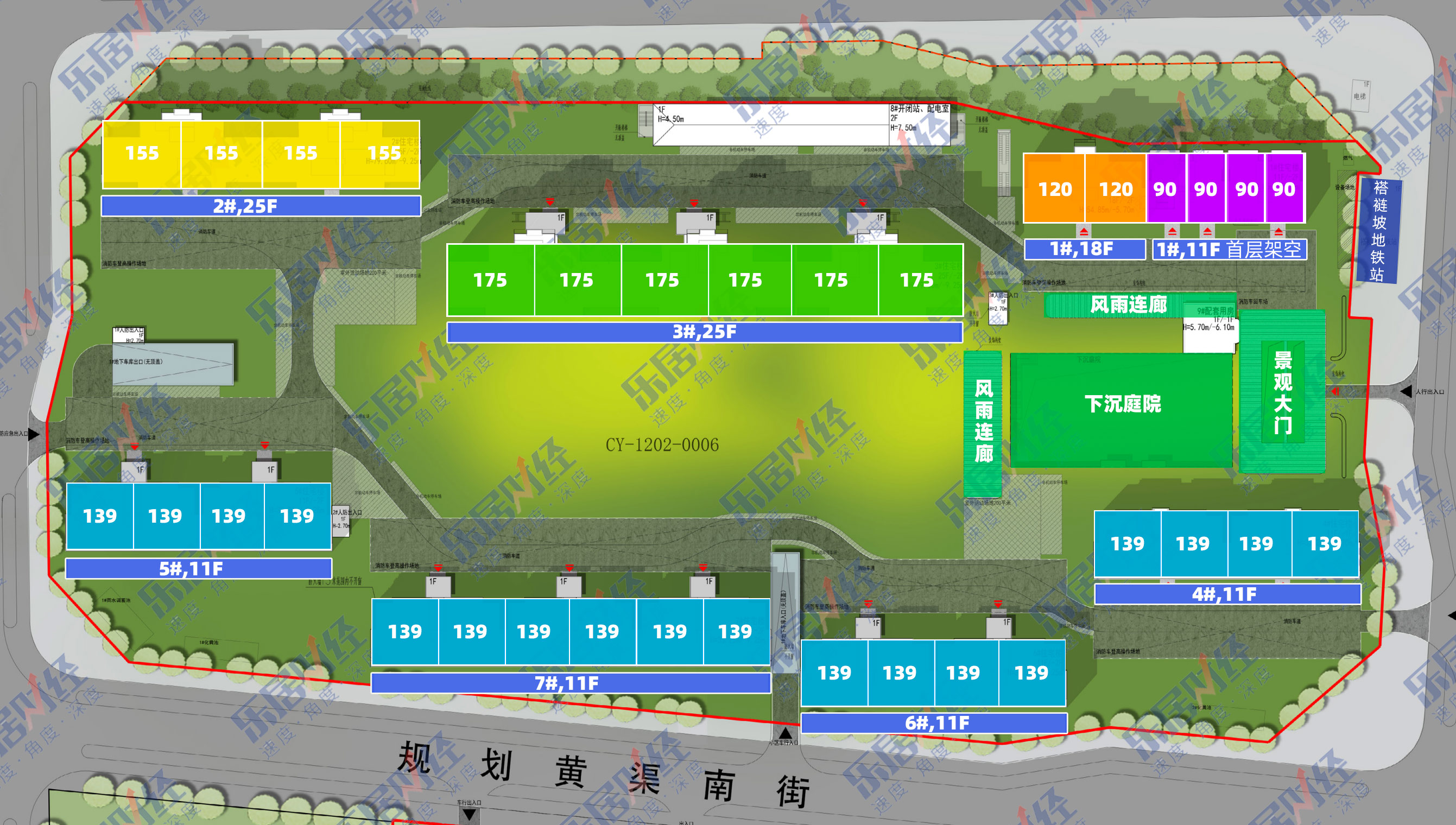 7栋住宅楼,地上总建面7.6万㎡,共524户,户均建面约145㎡。