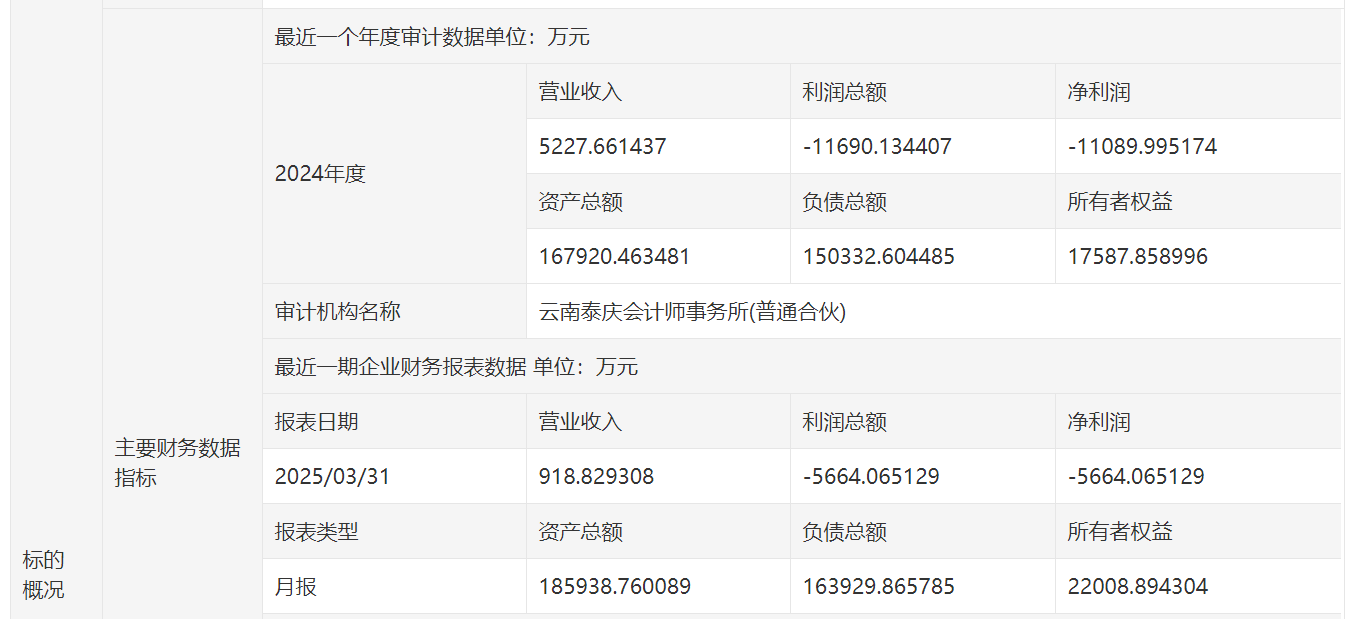 最近一期企业财务报表数据显示,2025年一季度,文山民丰村镇银行有限责任公司营业收入918.83万元,净利润-5664.07万元;截至2025年3月31日,资产总额18.59亿元,负债总额16.39亿元。