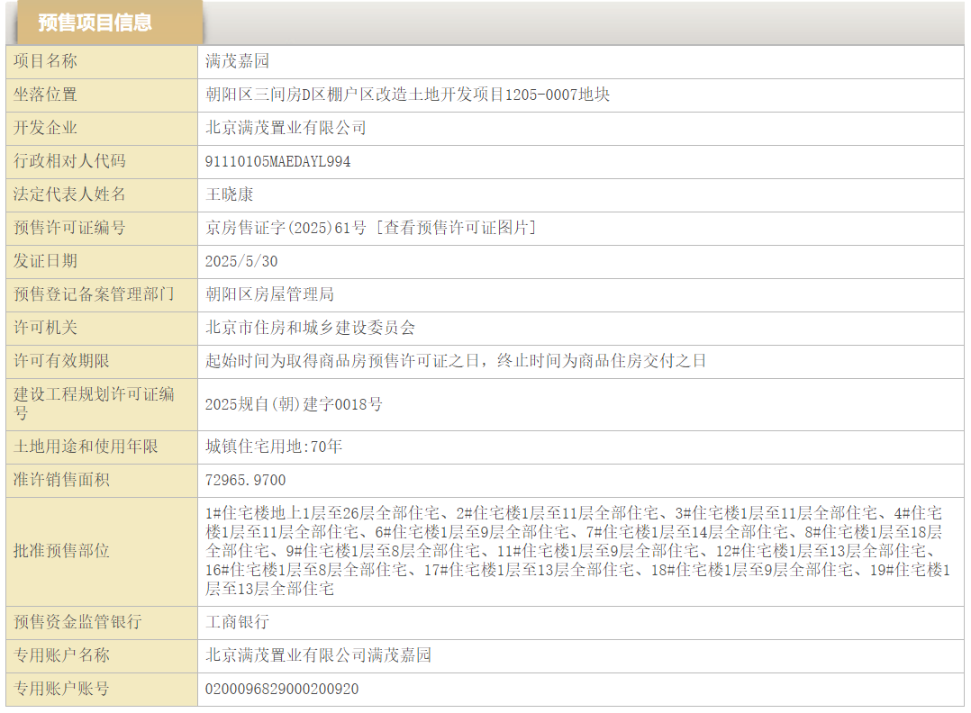 北京进深 赵盼盼 5月30日,金茂满曜569套住宅取得预售许可证,备案名为满茂嘉园。