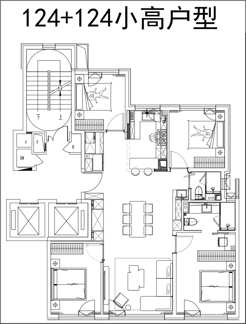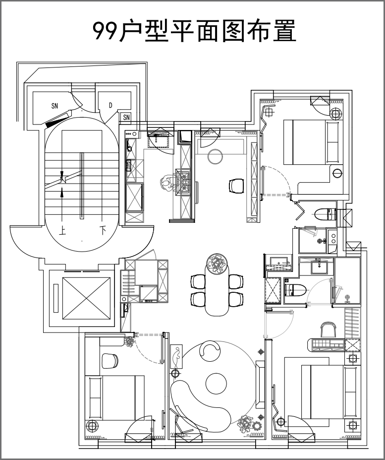 四居起步建面拉低到99平米,三分离公卫,U型操作台的厨房。