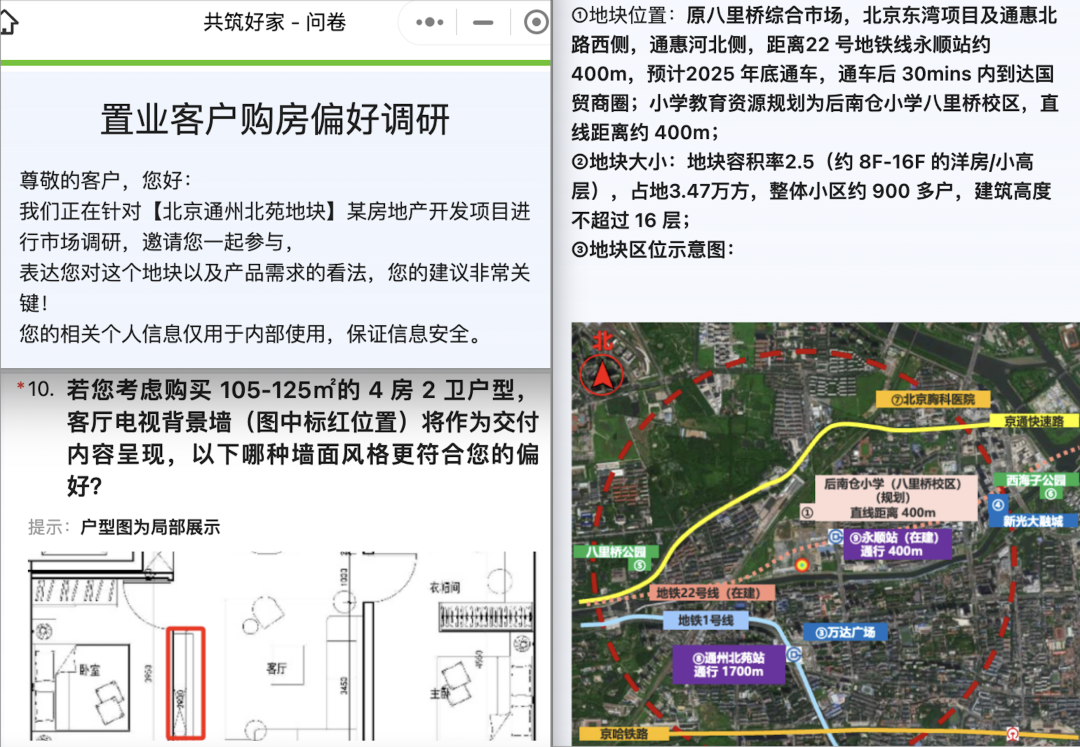 北京进深近日收到链家小伙伴发来的一份小程序问卷调查,有关【通州北苑】项目。