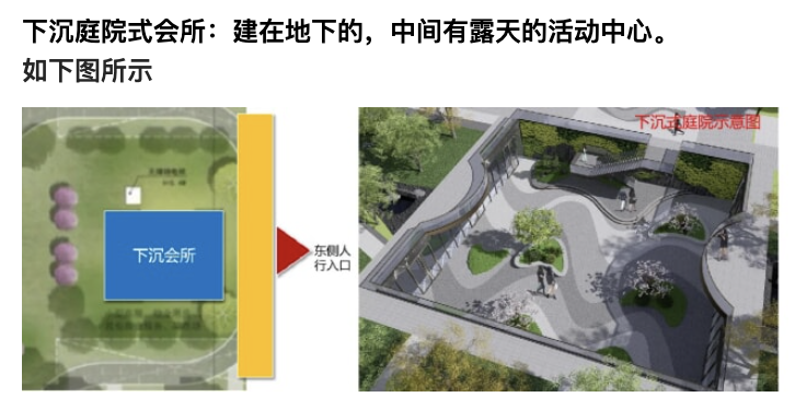西区大门占地没有东区宽阔,但向内延伸出一大片下沉庭院。有景观廊架连接,大概是类似于风雨连廊的存在。