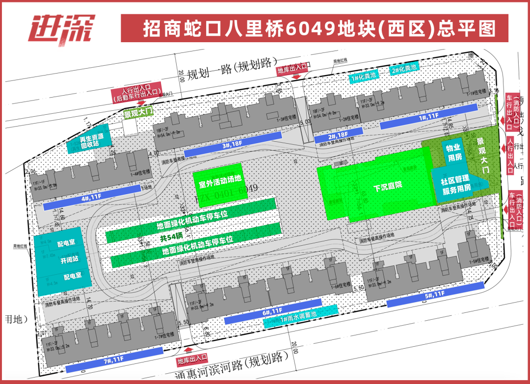 2、西区6049地块占地2.14公顷,地上建面5.35万平方米。拟建7栋11-18F住宅楼,共540户。
