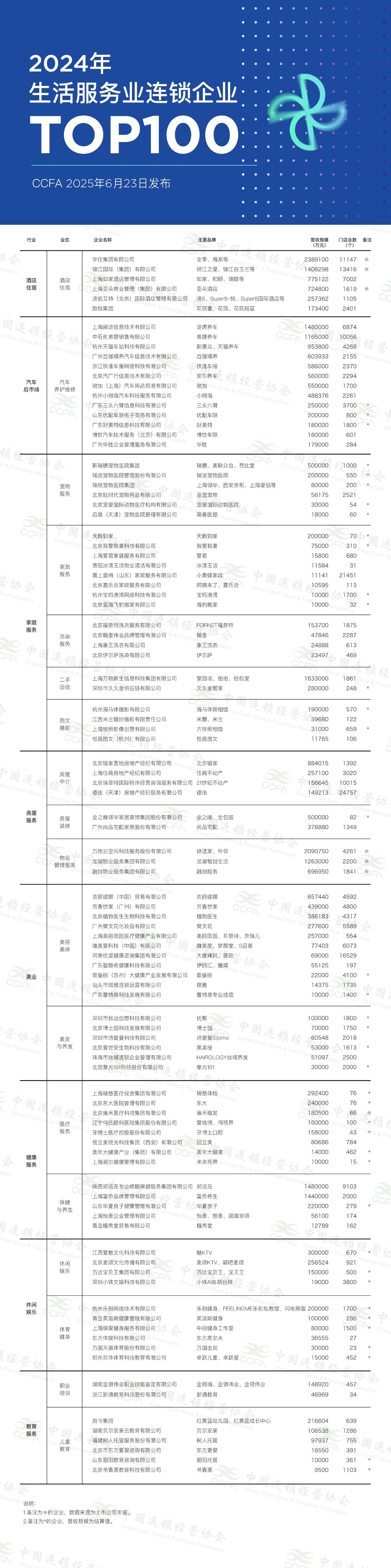 统计显示,2024年生活服务业连锁Top100企业年营收规模达3194.7亿元,较2023年上榜企业营收规模增长7.5%,门店总数为25.2万个,较2023年上榜企业门店总数增长了27.9%。