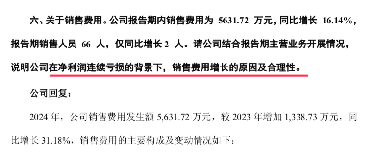 对此,监管要求公司结合报告期主营业务开展情况,说明公司在净利润连续亏损的背景下,销售费用增长的原因及合理性。