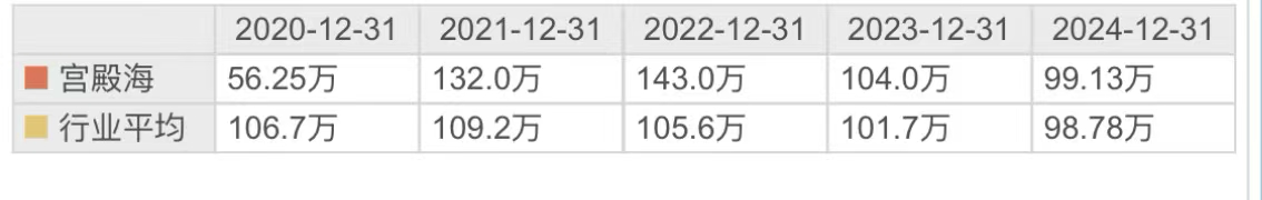 东方财富数据显示,2020-2024年,宫殿海的薪酬分别为56.25万元、132.0万元、143.0万元、104.0万元、99.13万元。