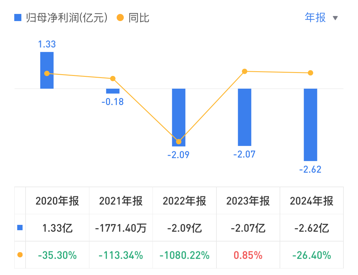 2024年,公司营收为3.41亿元,同比增长68.15%,实现归母净利润为-2.62亿元,同比增长26.39亿元,扣非归母净利润为-2.59亿元,同比增长24.73%。