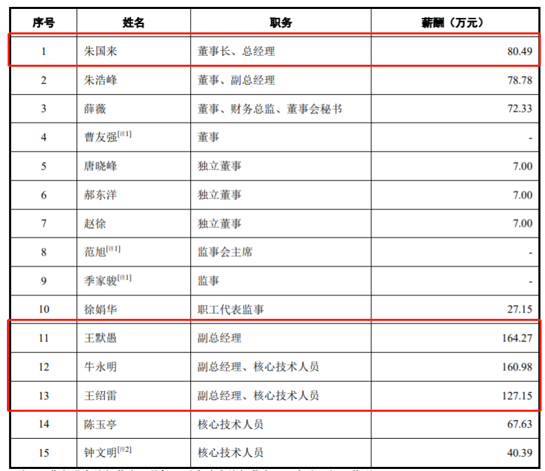 2024年,朱国来薪酬为80.49万元,仅为副总经理王默愚(164.27万元)、副总经理牛永明(160.98万元)的一半。