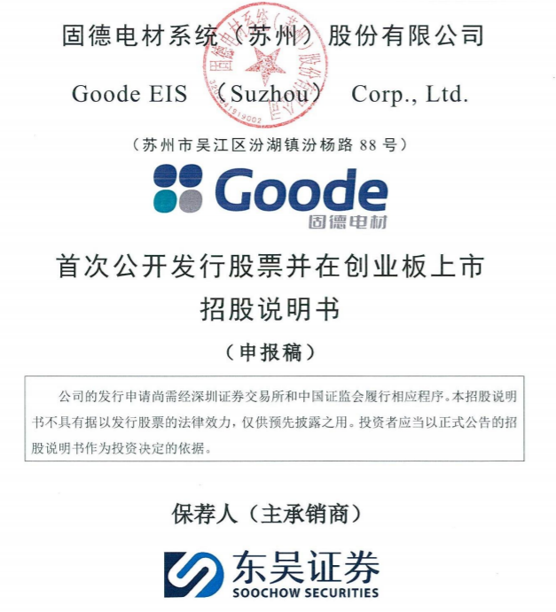 瑞财经 王敏 6月27日,固德电材系统(苏州)股份有限公司(以下简称“固德电材”)创业板IPO获受理,保荐机构为东吴证券,保荐代表人为笪敏琦、左道虎,会计师事务所为容诚。