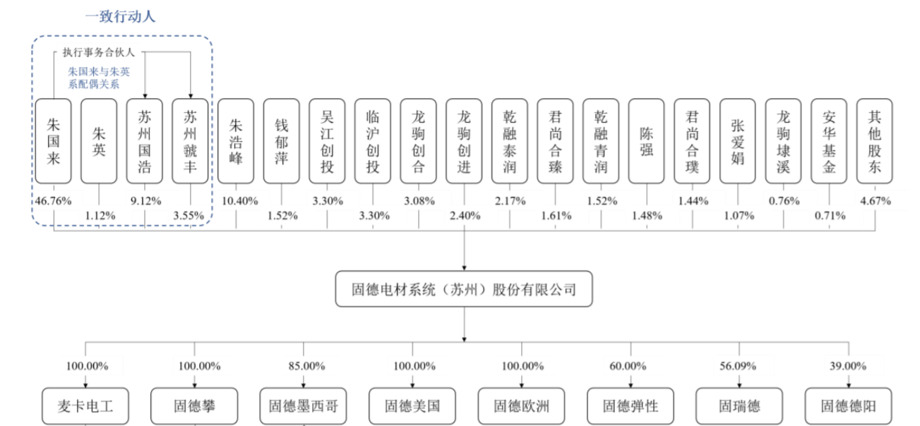 朱国来,1979年10月出生,中国国籍,大学学历,获高层管理人员工商管理硕士(EMBA)学位。2001年7月至2008年7月,任吴江市太湖绝缘材料厂销售经理、副总经理;2008年8月至2011年3月,任固德有限销售经理;2011年3月至2011年11月,任固德有限监事、销售经理;2011年11月至今,任公司董事长兼总经理。