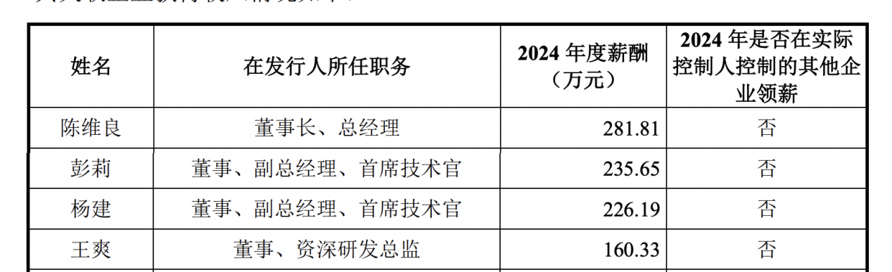 薪酬方面,2024年,沐曦股份董事长、总经理陈维良薪酬为281.81万元,董事、副总经理、首席技术官彭莉、杨建薪酬分别为235.65万元、226.19万元。