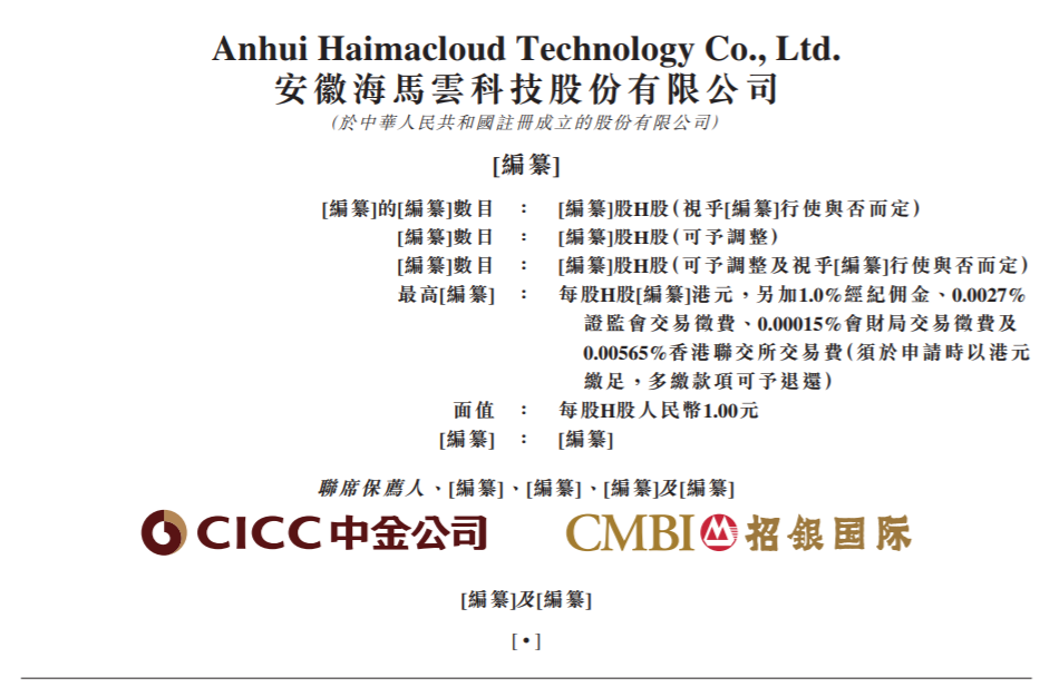 瑞财经 王敏 6月27日,安徽海马云科技股份有限公司(以下简称“海马云”)向港交所递交招股说明书,拟主板挂牌上市,中金公司和招银国际担任联席保荐人。