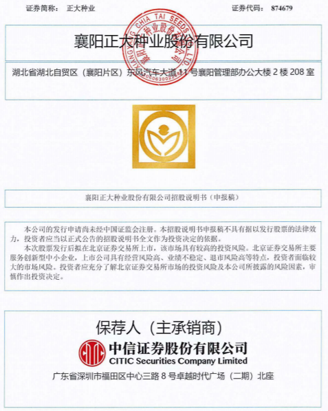 瑞财经 王敏 6月30日,襄阳正大种业股份有限公司(以下简称“正大种业”)北交所IPO获受理,保荐机构为中信证券,保荐代表人为李良、吴博申,会计师事务所为毕马威华振。