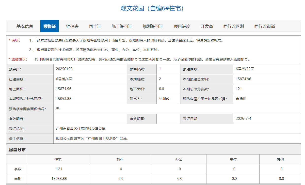 粤进深 赵盼盼 据广州市住建局,近日,位于番禺洛溪岛的龙湖亚伦央璟颂(备案名:观文花园)6栋住宅拿到预售许可证,批准预售住宅121套,预售总面积为15053.88m²。