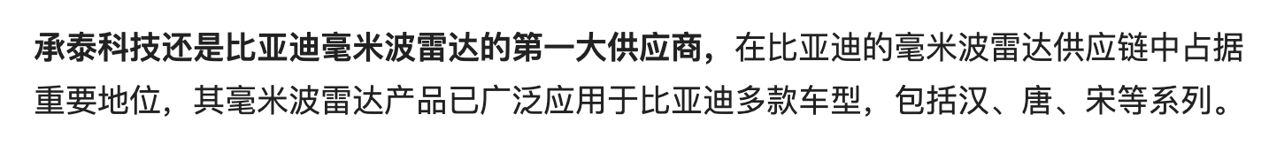 成立于2016年的承泰科技是一家毫米波雷达供应商,主要为车载智能驾驶系统提供核心感知传感器。