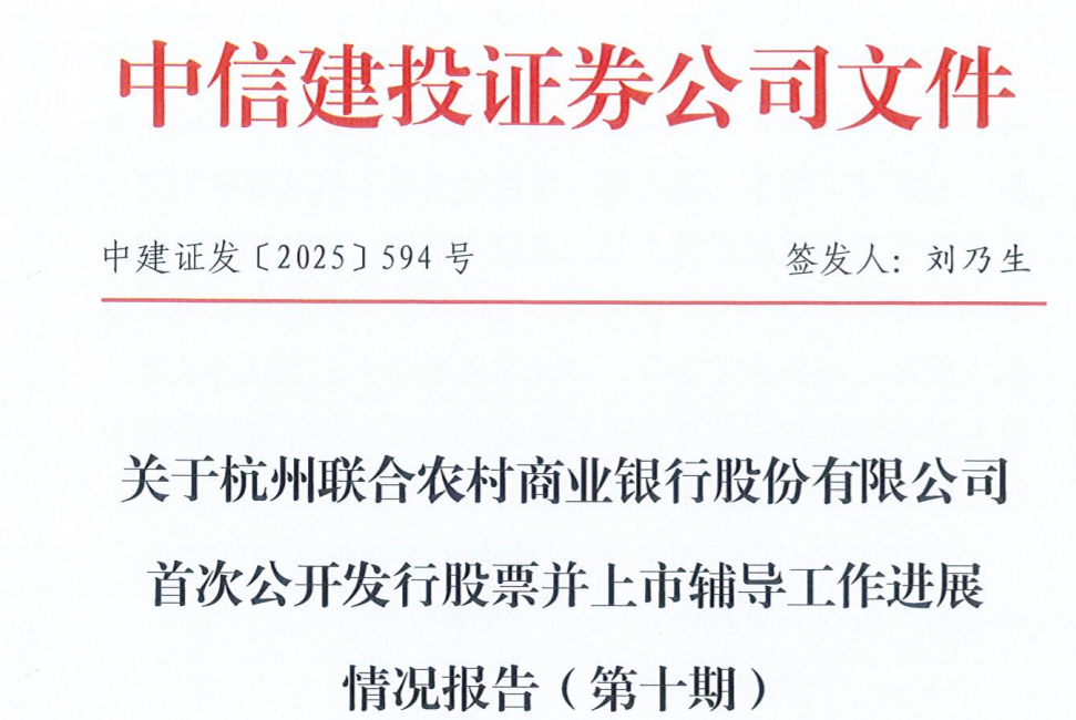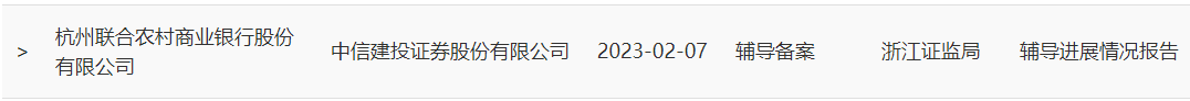 瑞财经 王敏 7月17日,杭州联合农村商业银行股份有限公司(以下简称“杭州联合银行”)披露关于首次公开发行股票并上市辅导工作进展报告(第十期),辅导机构为中信建投证券。