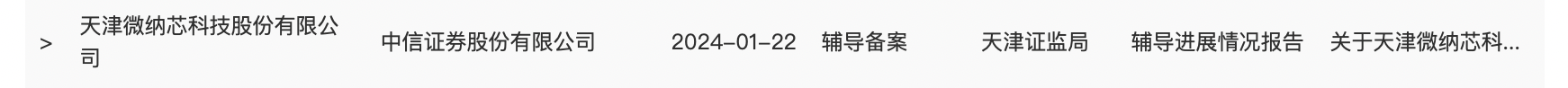 瑞财经 吴文婷 近日,天津微纳芯科技股份有限公司(以下简称“微纳芯”)披露IPO辅导辅导工作进展情况报告 (第六期) ,辅导机构为中信证券股份有限公司(以下简称“中信证券” )。