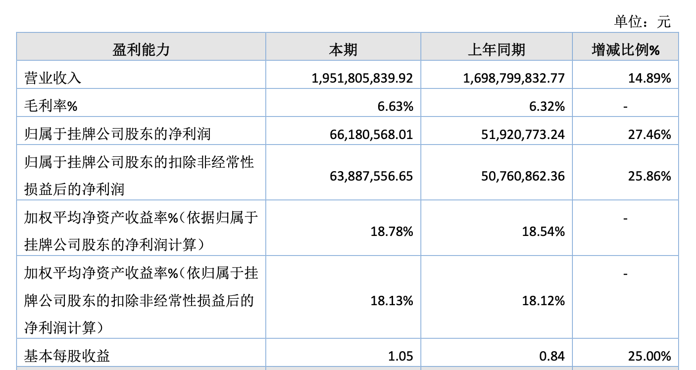 2024年,公司营业收入为19.52亿元,同比增长14.89%;归母净利润为6618.06万元,同比增长27.46%。