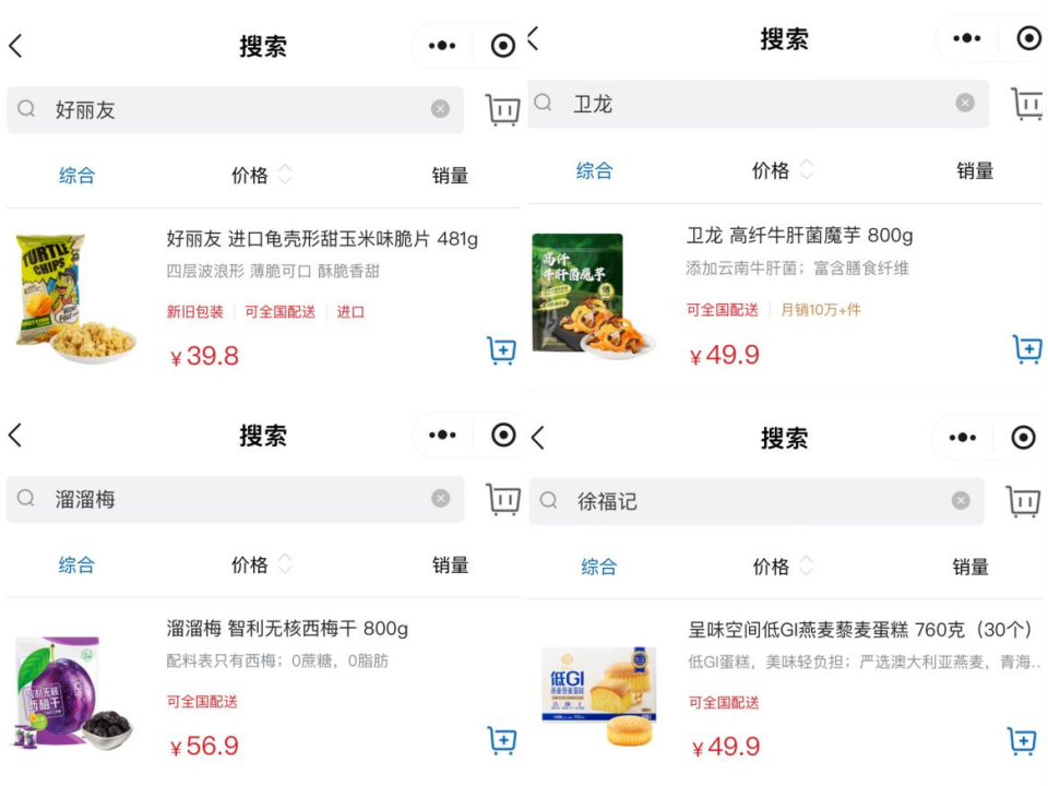目前,低糖好丽友派没有重新上线销售,在山姆APP能购买的好丽友产品仅为“龟壳形甜玉米味脆片”。而卫龙高纤牛肝菌魔芋爽、溜溜梅智利无核西梅干、徐福记燕麦藜麦蛋糕等随后以“山姆专供版”重新上架。