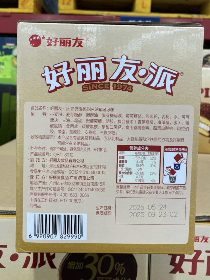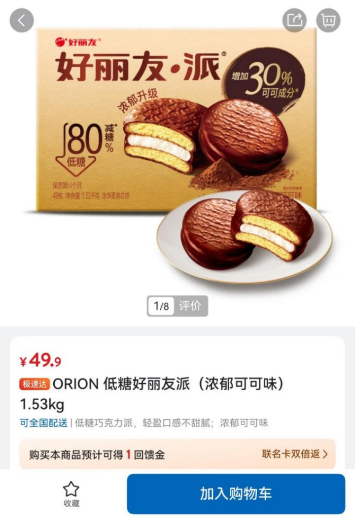 据了解,今年6月,山姆会员商店上架了一款低糖好丽友派,售价49.9元一盒、内含48枚,山姆宣称这款产品“糖分减少80%、可可含量增加30%”。但就是这款好丽友派,引发了会员们对山姆选品能力的声讨。