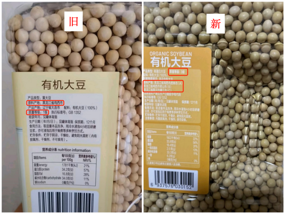 7月23日,有网友发帖称,售价36.8元的MM有机大豆,去年还是“一级非转基因”,今年悄悄换成“三级”。山姆客服确认:“这个品质确实是有下降。目前售卖的这一款它确实是一个三级的大豆。”