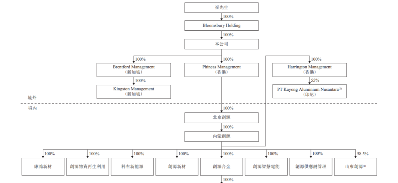 招股书显示,创新国际在上市前的股东架构中,崔立新通过Bloomsbury Holding持股100%。