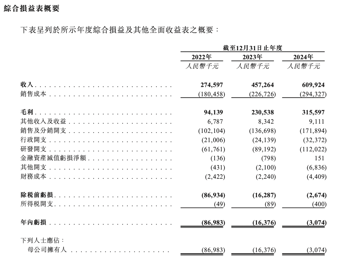据招股书,2022年-2024年,卧安机器人实现收入分别为2.75亿元、4.57亿元、6.1亿元;年内亏损分别为8698.3万元、1637.6万元、307.4万元。