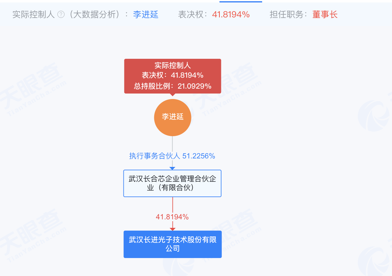 天眼查显示,长进光子由董事长李进延控制41.82%表决权。此外,杰普特、力合科创、沃土基金、华为旗下哈勃投资等参股。