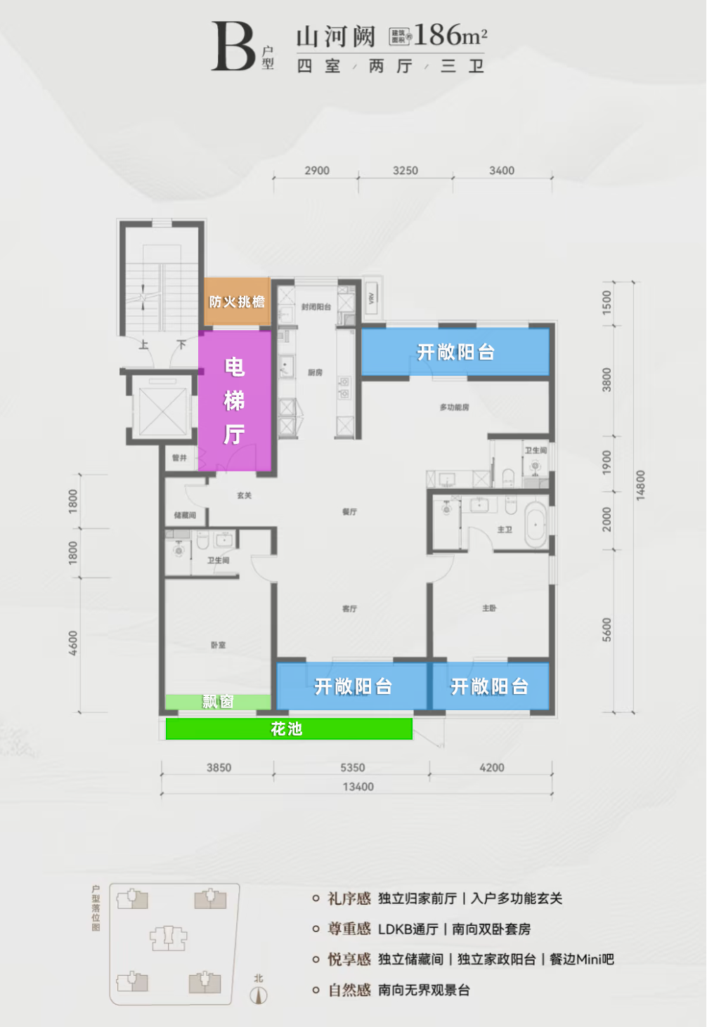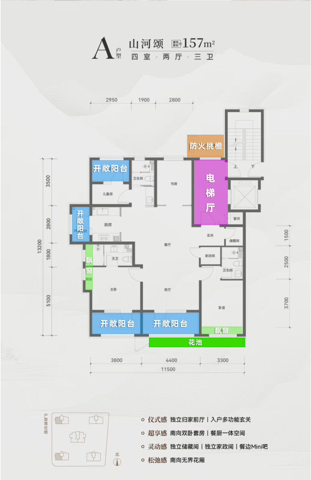 主打改善大平层,主力157/㎡186㎡/239㎡。