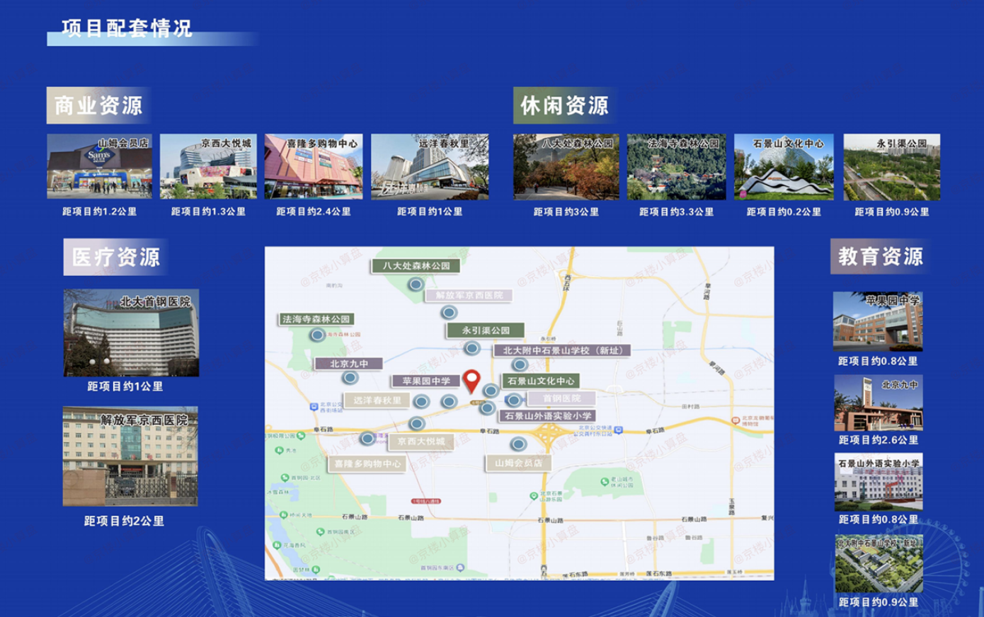 生活配套包括物美超市、山姆会员店、当代商城、京西大悦城等;