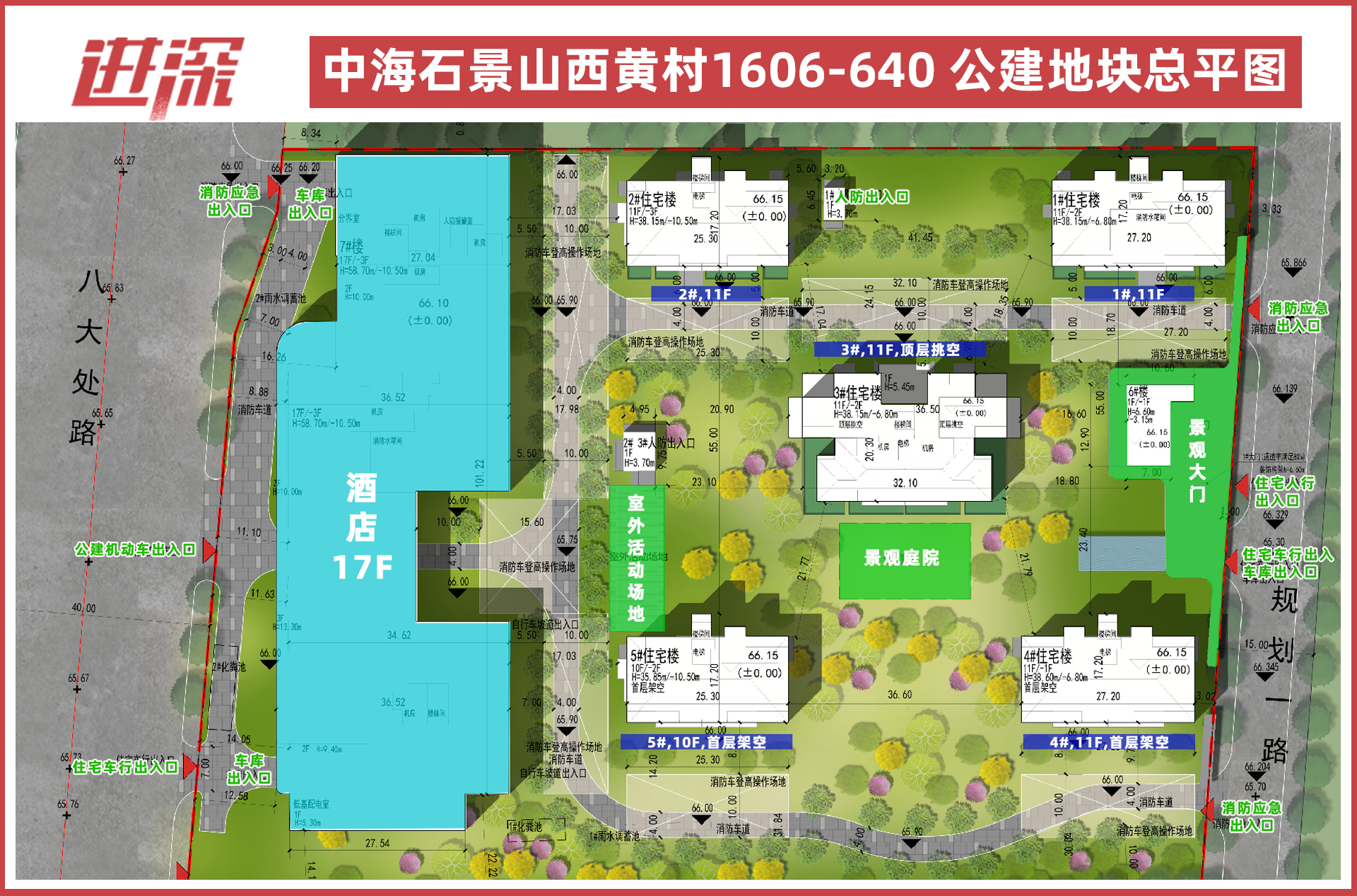 酒店为一栋17层高单体建筑,位于地块西侧,总建面约4.04万平方米。