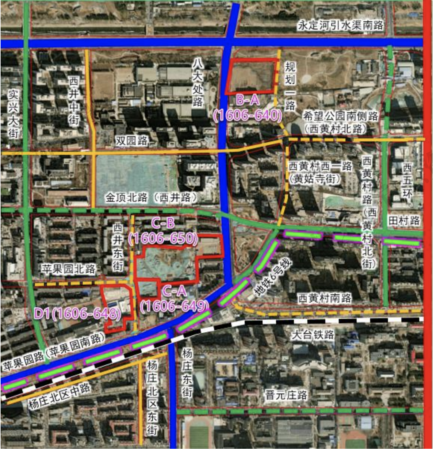 宗地位于苹果园街道,地处五环与六环之间,临近地铁6号线杨庄站、西黄村站,距城市干道西五环、阜石路约1公里,交通便利。