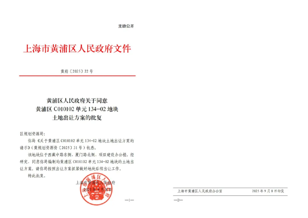 上海进深 张林霞 近日,据黄浦区人民政府官网信息显示,黄浦区C010101单元134-02地块已正式获批、即将出让。