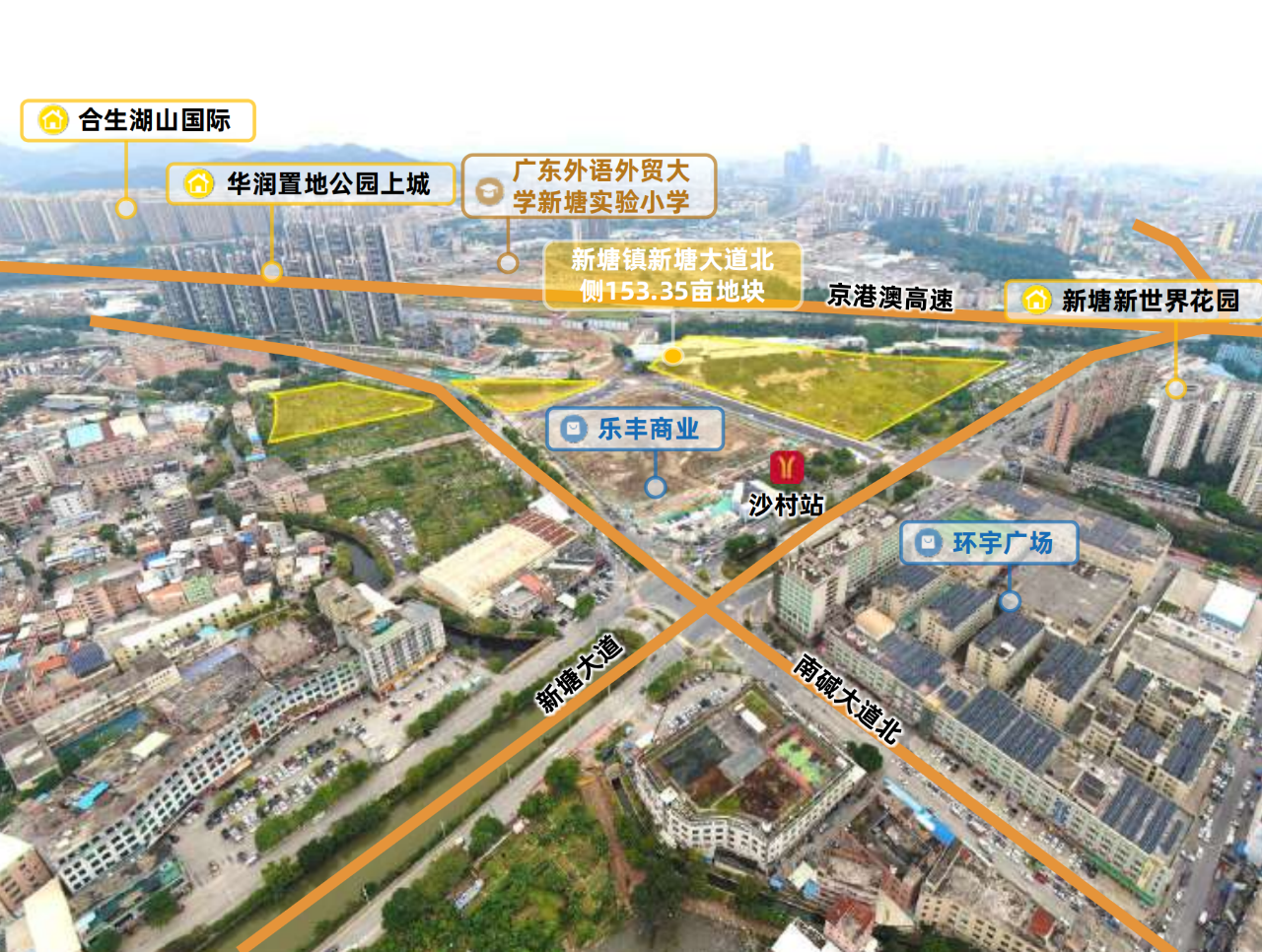 地块位置不错,距离地铁13号线沙村站不足100米,妥妥的地铁上盖。周边有广东外语外贸大学附属新塘实验小学、鹤泉小学、南方医院等配套。