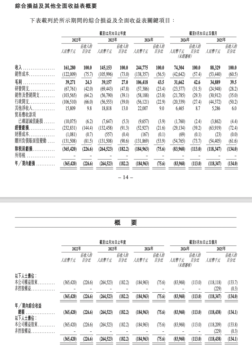2025年前5个月,公司实现收入为8832.9万元,同比增长18.88%;期内亏损为1.18亿元,而上年同期亏损为8396.8万元。