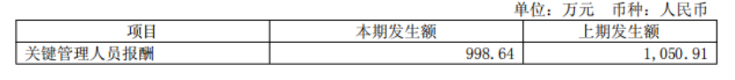 上半年,关键管理人员报酬998.64万元,同比减少了52.27万元。