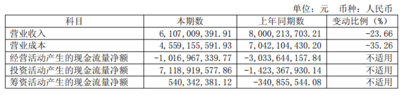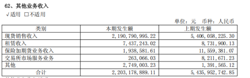 尤其是现货销售收入,上半年为21.9亿元,较上年同期减少了32.16亿元。