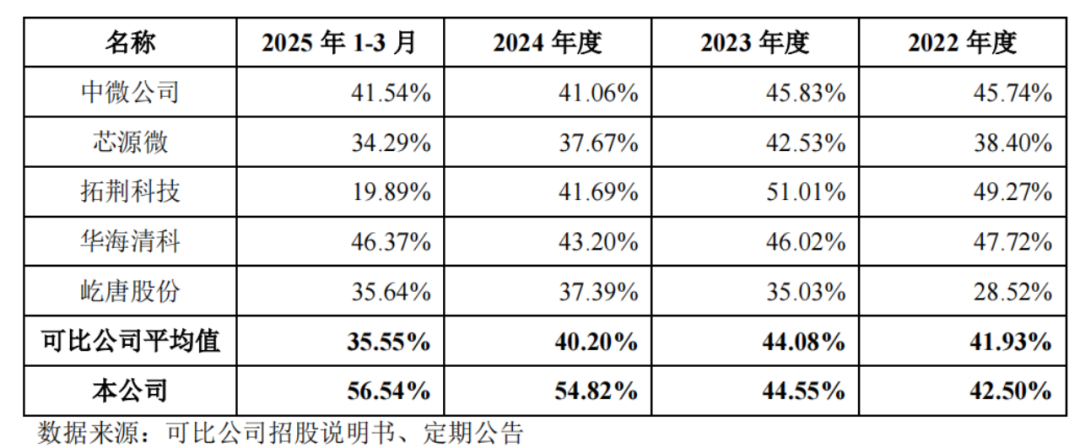 此外,莱普科技毛利率水平相比同行业可比公司毛利率高出不少。报告期内,可比公司毛利率均值分别为41.93%、44.08%、40.2%及35.55%。2024年及2025年一季度,莱普科技较之分别高出14.62个百分点、20.99个百分点。