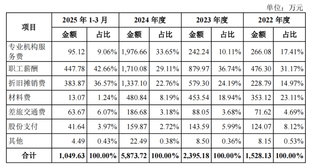2024年,研发费用同比大增145.23%。其中,专业机构服务费中的验证费同比大幅增长11倍至1559.13万元;折旧摊销费同比增加757.8万元至1337.1万元。