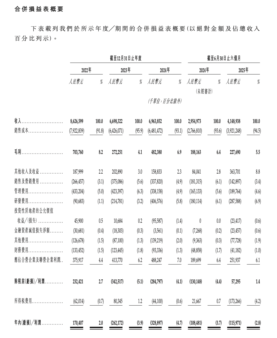 据招股书,2022年-2024年,千里科技实现收入分别为86.27亿元、66.98亿元、69.64亿元;年内利润分别为1.7亿元、-2.62亿元、-3.29亿元。