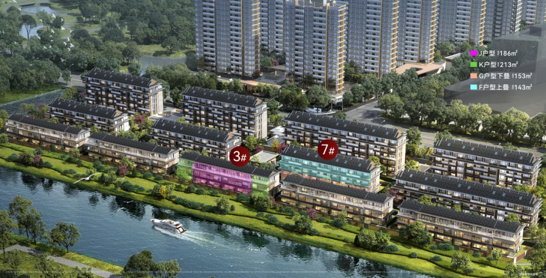 叠加共计12套房源,有6套建面约143㎡上叠与6套建面约154㎡下叠。还有4套建面约186㎡联排与2套建面约212㎡联排。