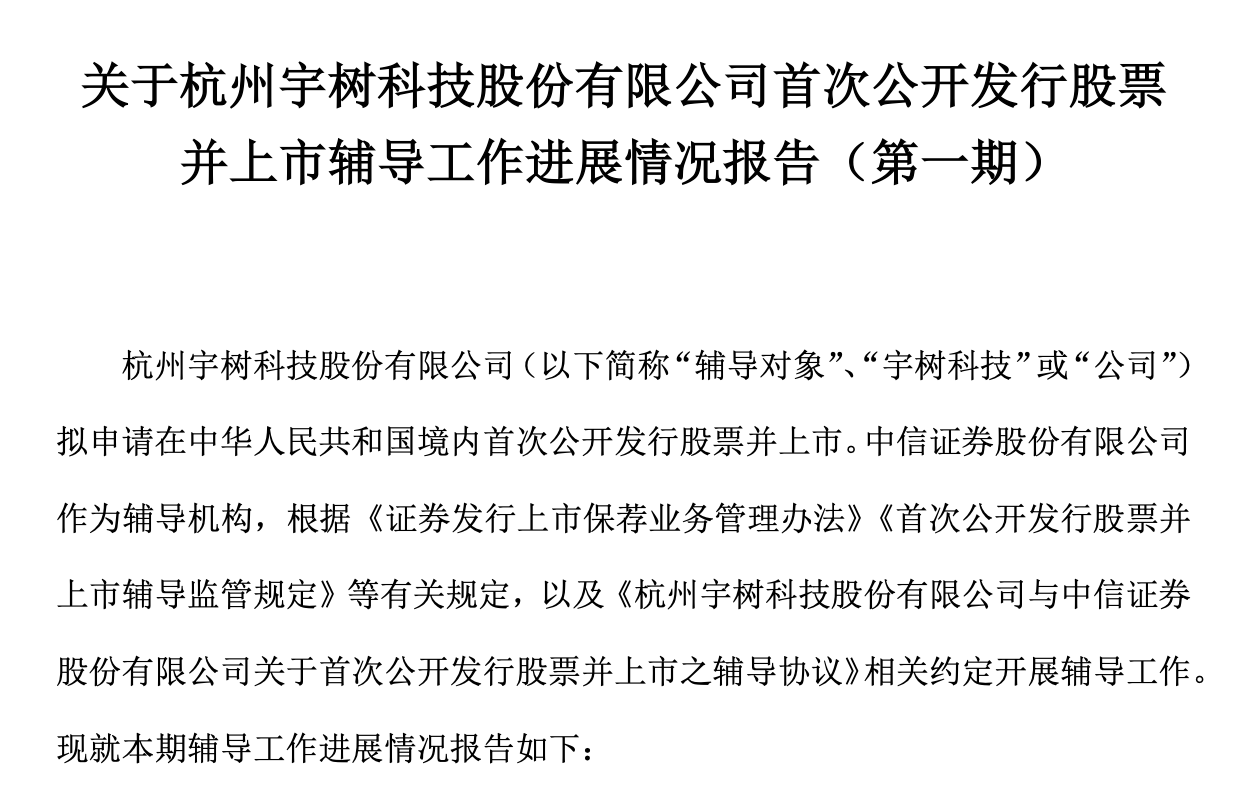 瑞财经 吴文婷 10月21日,杭州宇树科技股份有限公司(以下简称“宇树科技”)披露IPO辅导工作进展情况报告(第一期),辅导机构为中信证券股份有限公司。