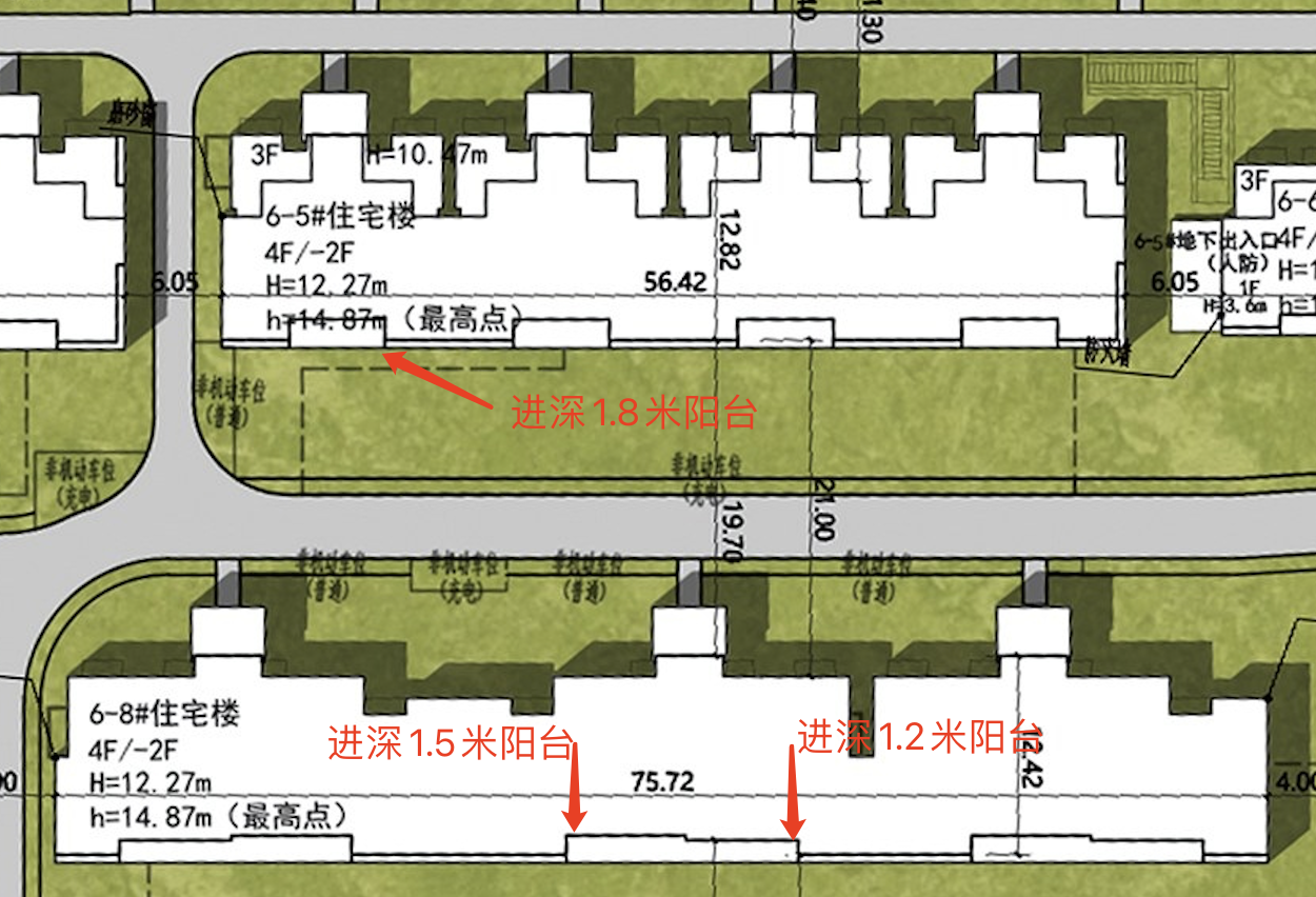 二期调规后,南向新增了内嵌阳台,进深1.2米/1.5米/1.8米不等。