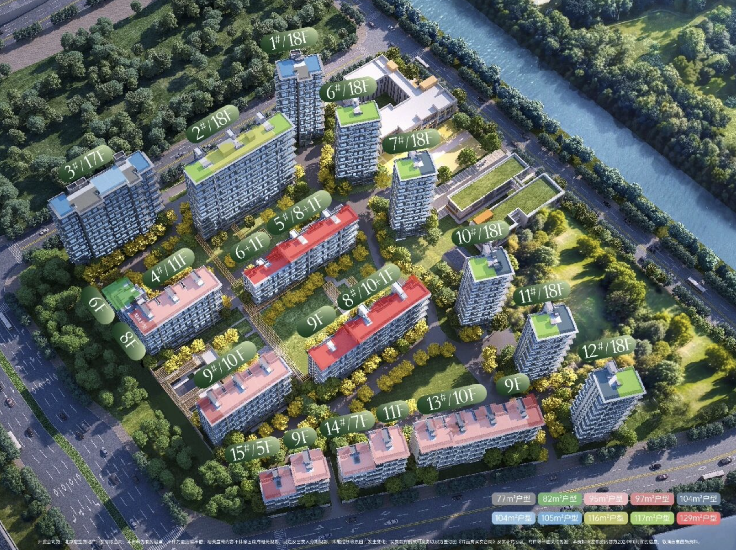 主力户型77-127㎡二至四居,综合得房率约86%-96%,层高3米。