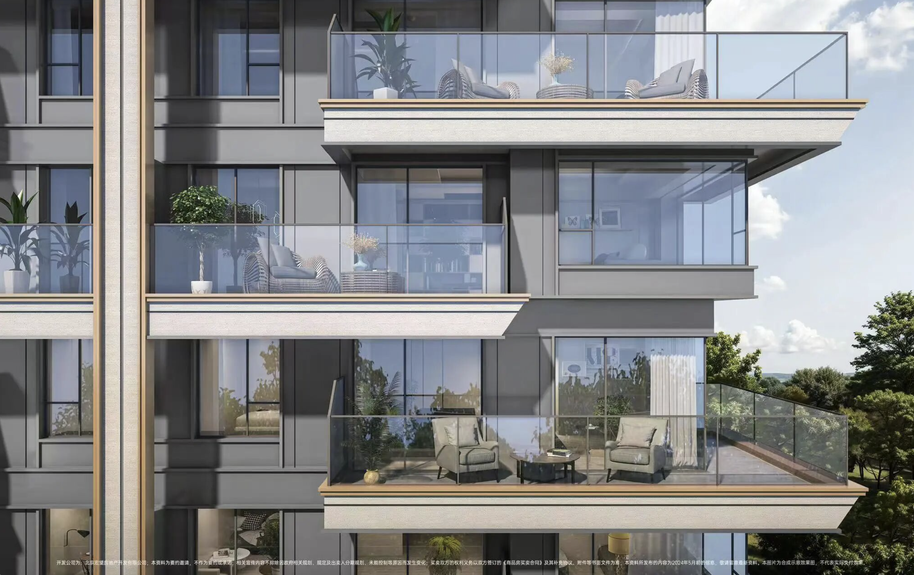 作为全国首个携好房子大赛一等奖落地的住宅项目,龙湖·观萃设计了大尺度错层阳台,开拓性打造270°空中浮岛。